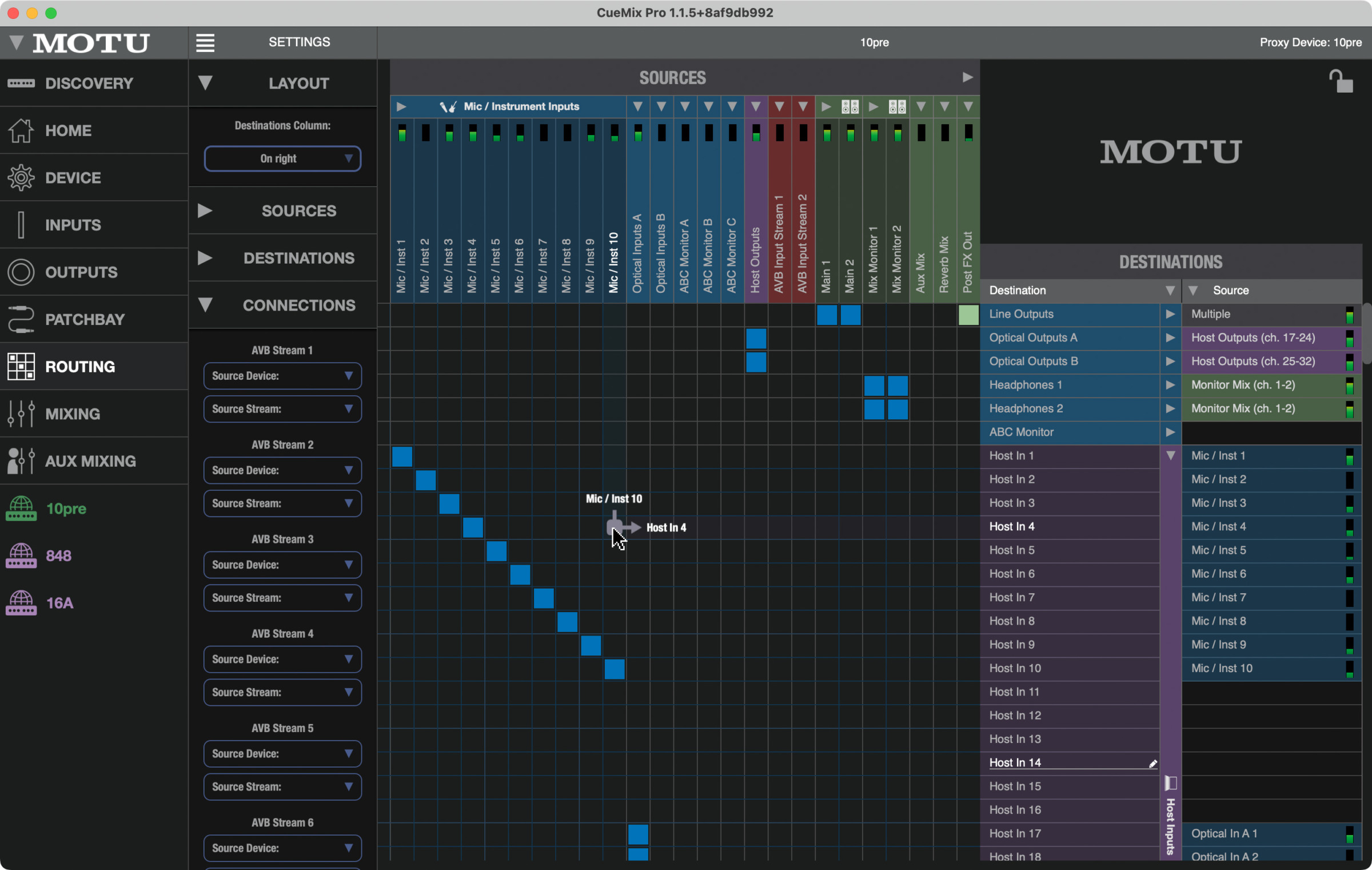 Mit der Routing- und Splitting-Patchbay/Matrix hast du die volle Kontrolle über jeden einzelnen analogen/digitalen Eingang, Computerkanal und Netzwerkstream. Alle MOTU-AVB-Interfaces kannst du auch standalone verwenden.