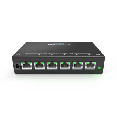 Der MOTU AVB Switch™ bietet sechs 1-Gigabit AVB-Anschlüsse für jegliche AVB-Geräte (selbst andere Switches), inkl. einem Anschluss für die Verbindung mit einem Standard-Ethernet-Netzwerk. Nutze die Vorteile von AVB, einschließlich Plug-and-Play-Bedienung, garantierter Servicequalität und selbstregulierter Verwaltung der Netzwerkressourcen.